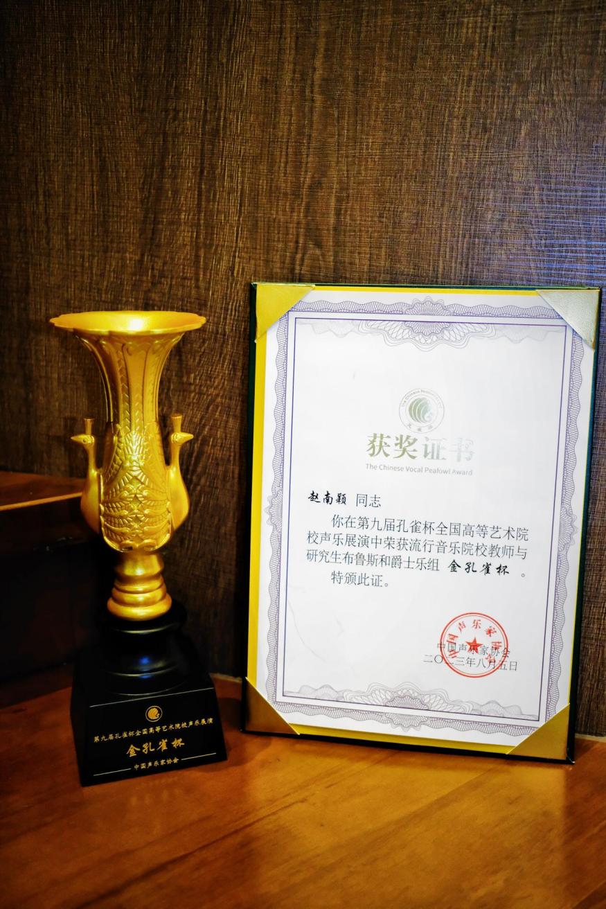 (关俊文)第九届孔雀杯高等艺术院校声乐展演及系列活动于7月28日在浙江音乐学院拉开帷幕。来自全国200多所校(院)共2000多名师生参加了为期7天的展演。孔雀杯高等艺术院校声乐展演及高校声乐学术交流活动,是高等艺术院校声乐大规模、高层次的交流和展演活动。此项大赛由中国声乐家协会、孔雀杯展演组委会主办。大赛设教师、研究生、学生组,专业分别设民族、美声组、流行组,并邀请全国50多位音乐学院院长、系主任、声乐教授、歌唱家、理论家担任专家评审。我院青年教师和学生代表学校角逐流行音乐院校教师组、综合师范院校本科生民族组、钢琴艺术指导民族组比赛。其中赵南颖老师获得流行音乐院校教师与研究生布鲁斯和爵士乐组“金孔雀杯”奖,并作为优秀选手在崔泉馨教授讲座上进行范唱,在其他组别的比赛中,我院学生林信校荣获综合师范院校本科生民族组“展演奖”、梁俊灵荣获钢琴艺术指导民族组“优秀钢琴伴奏奖”。