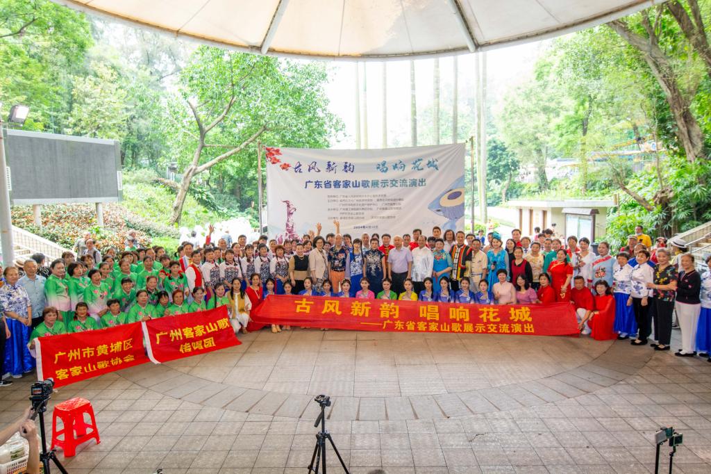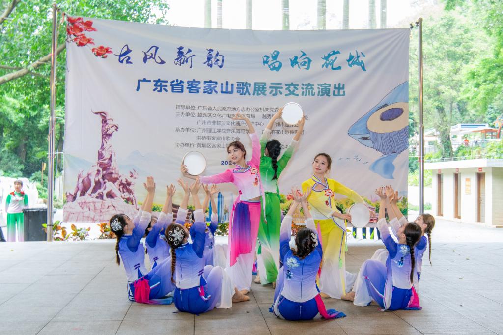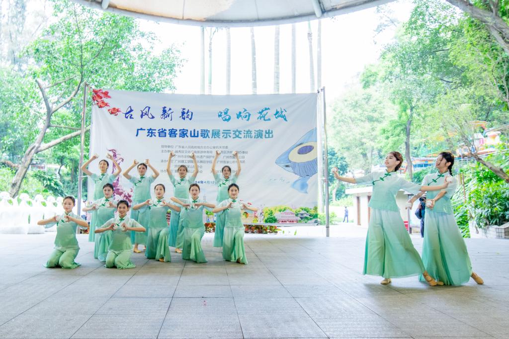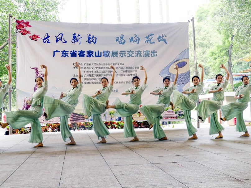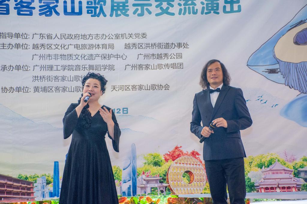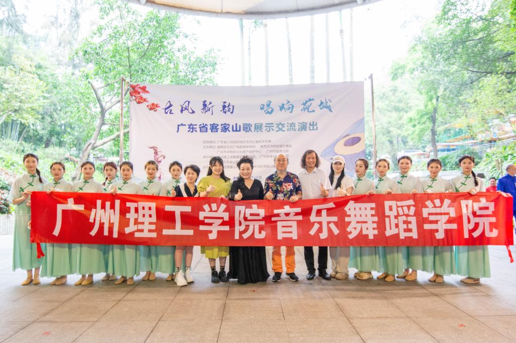 (李绍威 邢锦锦 李嘉嘉)4月12日上午,由广东省人民政府地方志办公室机关党委指导,越秀区文化广电旅游体育局、广州市非物质文化遗产保护中心等主办,威廉希尔williamhill中文,威廉希尔williamhill中文等三家单位承办的“古风新韵 唱响花城”广东省客家山歌展示交流演出活动成功举办。威廉希尔williamhill中文,威廉希尔williamhill中文师生受邀参加活动。本次演出活动在广州市越秀公园北秀歌舞台举办,参演队伍有广州市各区、河源等地的客家山歌传唱团和我校威廉希尔williamhill中文师生。本次活动由威廉希尔williamhill中文副院长刘福瑞、李丽丹带队,学院相关负责老师和10余名学生共同参与。