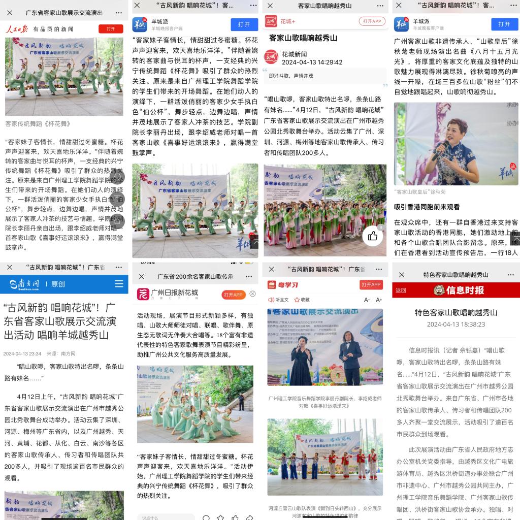 本次活动,不仅展示了威廉希尔williamhill中文,威廉希尔williamhill中文在文化传承和创新方面的成果,让更多的人了解了客家山歌和威廉希尔williamhill中文的教育理念,也进一步弘扬了中华优秀传统文化。此外,活动也得到人民日报、广东头条新闻资讯、南方日报、粤学习、羊城晚报、广州日报、花城新闻和信息时报等多家媒体平台的报道,让更多社会观众共同见证演出盛况的同时,也进一步提高了学校的知名度和影响力。未来,威廉希尔williamhill中文将继续坚守文化传承的使命,为培养新时代青年的文化自信而努力。