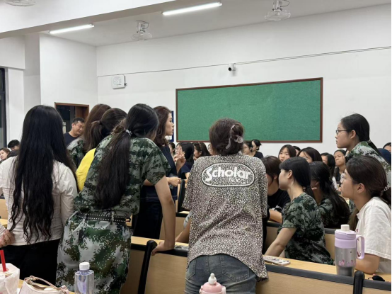 在师生互动环节,各班班导师与新生展开轻松愉快的交流。老师们亲切而幽默的谈话引来阵阵掌声与笑声,新生们也踊跃提问,与班导师就专业学习、生活适应等话题进行沟通,现场氛围融洽而热烈。