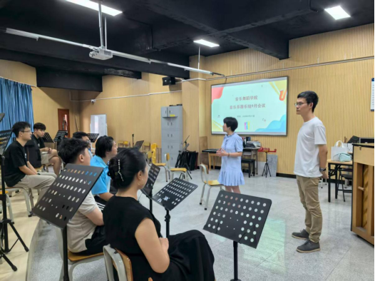 2025年9月11日器乐教研室在1栋407教室举行了本学期第一次教研会议。会议由钟中老师主持,器乐组全体教师参加,会议内容涵盖了招生、课程规划和排练安排等多个方面。