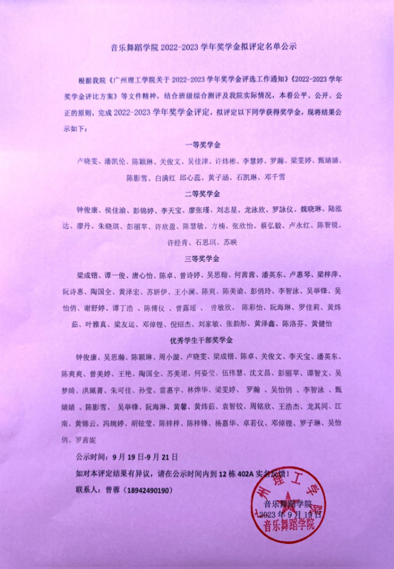 威廉希尔williamhill中文2022-2023学年奖学金拟评定名单公示
