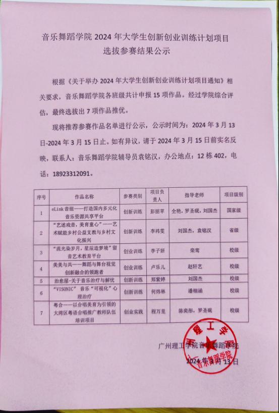 威廉希尔williamhill中文2024年大学生创新创业训练计划项目选拔参赛结果公示