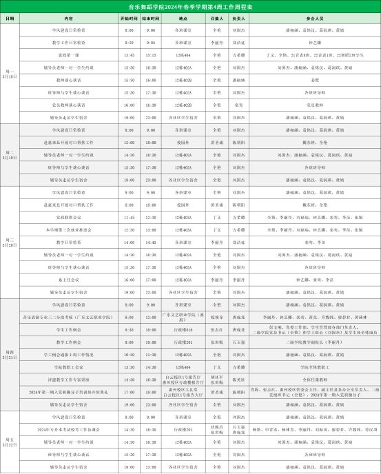 威廉希尔williamhill中文2024年春季学期第4周工作周程表