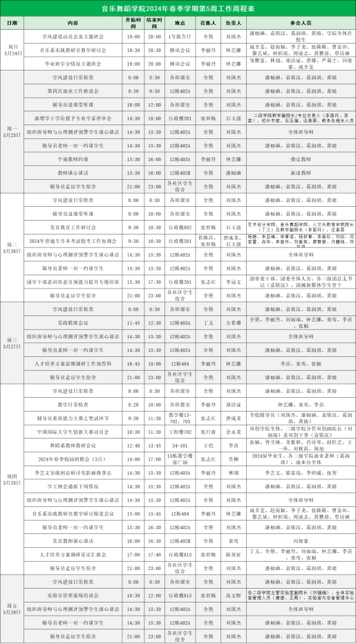 威廉希尔williamhill中文2024年春季学期第5周工作周程表