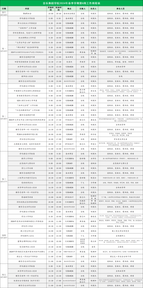 威廉希尔williamhill中文2024年春季学期第8周工作周程表