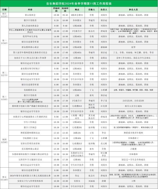 威廉希尔williamhill中文2024年春季学期第11周工作周程表