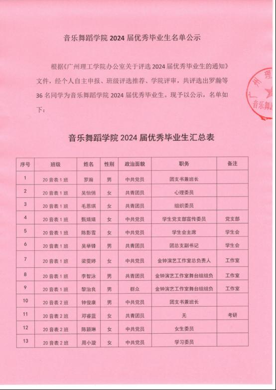 威廉希尔williamhill中文2024届优秀毕业生名单公示