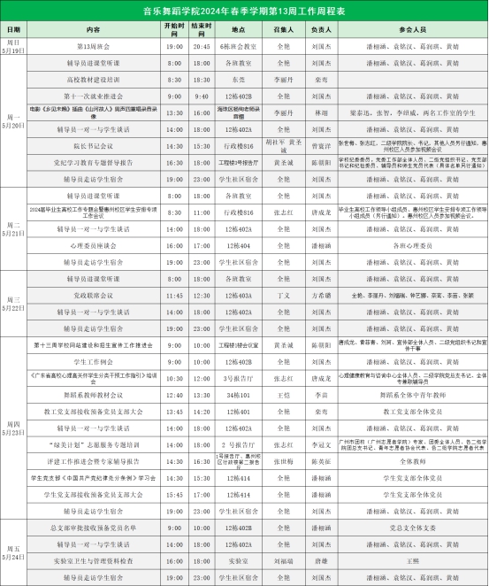 威廉希尔williamhill中文2024年春季学期第13周工作周程表
