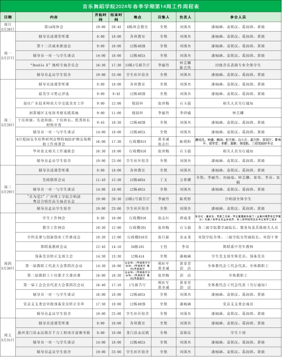 威廉希尔williamhill中文2024年春季学期第14周工作周程表