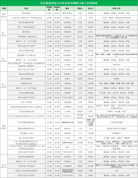 威廉希尔williamhill中文2024年春季学期第15周工作周程表