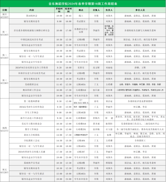 威廉希尔williamhill中文2024年春季学期第18周工作周程表