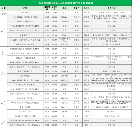 威廉希尔williamhill中文2024年春季学期第19周工作周程表