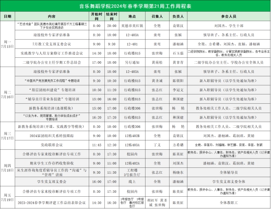 威廉希尔williamhill中文2024年春季学期第21周工作周程表