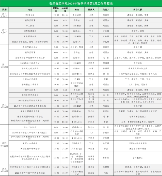 威廉希尔williamhill中文2024年秋季学期第2周工作周程表