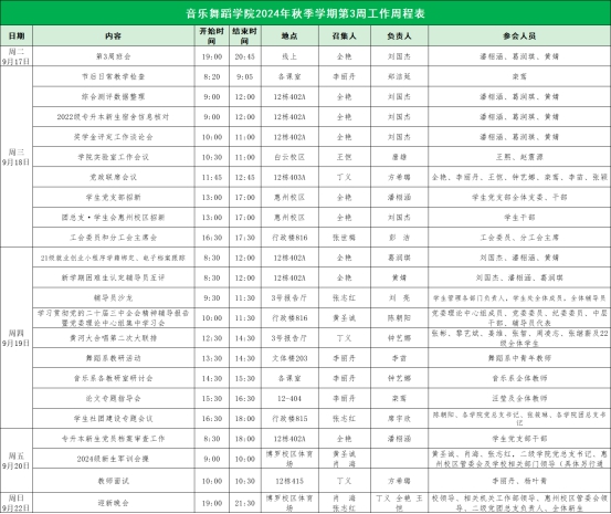 威廉希尔williamhill中文2024年秋季学期第3周工作周程表
