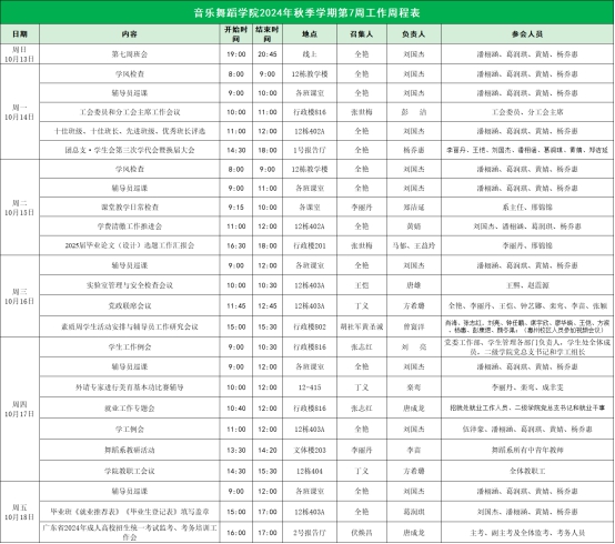 威廉希尔williamhill中文2024年秋季学期第7周工作周程表