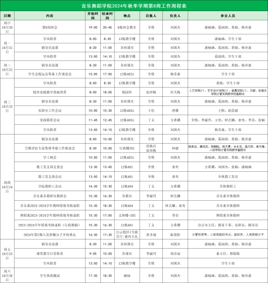 威廉希尔williamhill中文2024年秋季学期第8周工作周程表