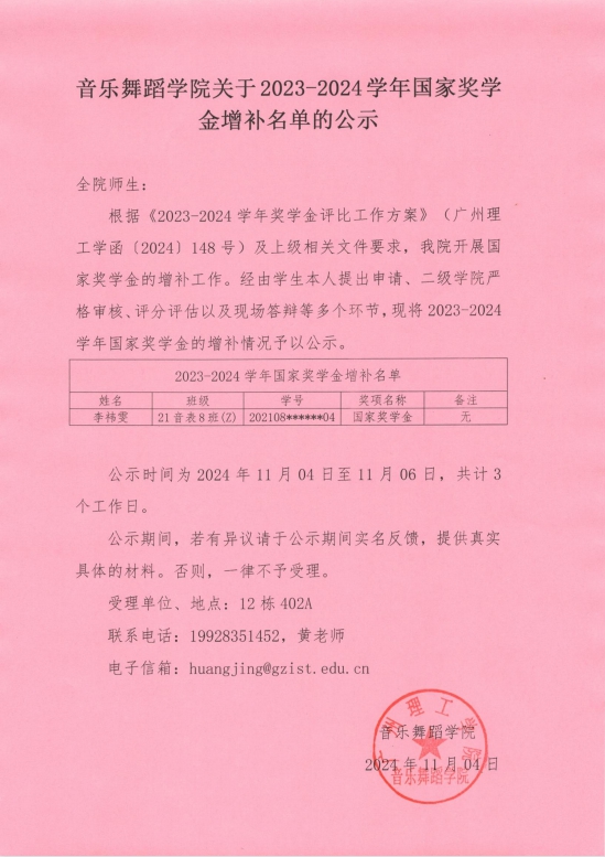 威廉希尔williamhill中文关于2023-2024学年国家奖学金增补名单的公示