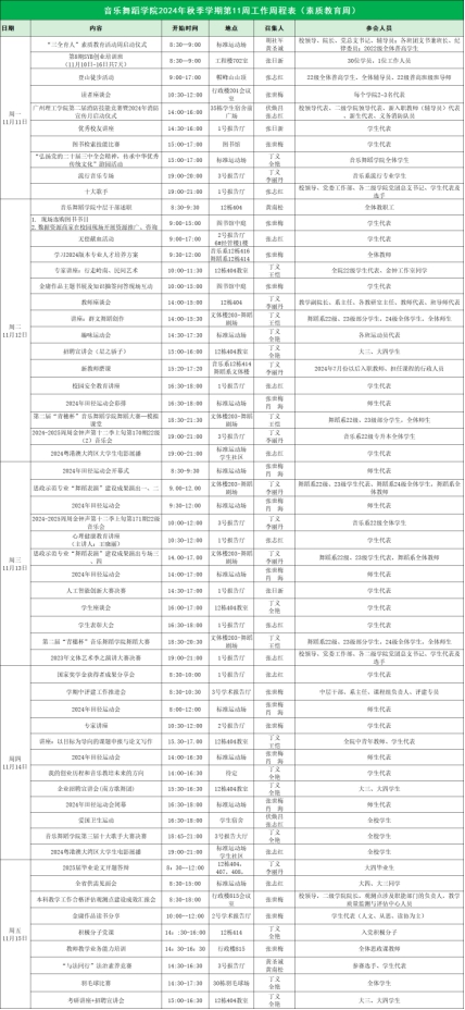 威廉希尔williamhill中文2024年秋季学期第11周工作周程表(素质教育周)