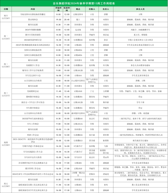 威廉希尔williamhill中文2024年秋季学期第13周工作周程表