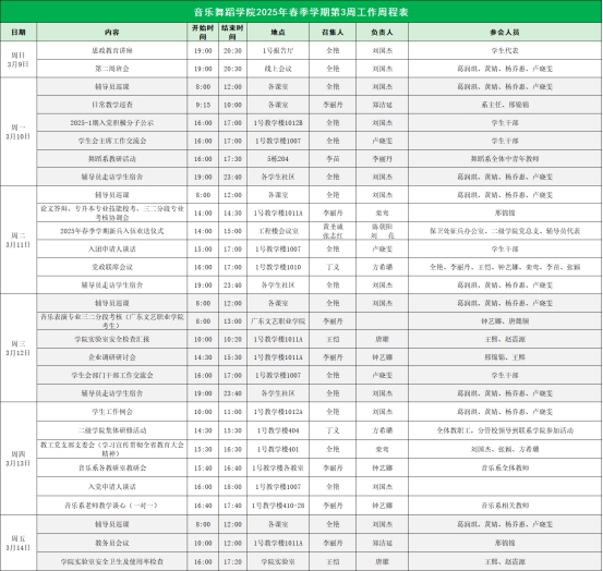 威廉希尔williamhill中文2025年春季学期第3周工作周程表