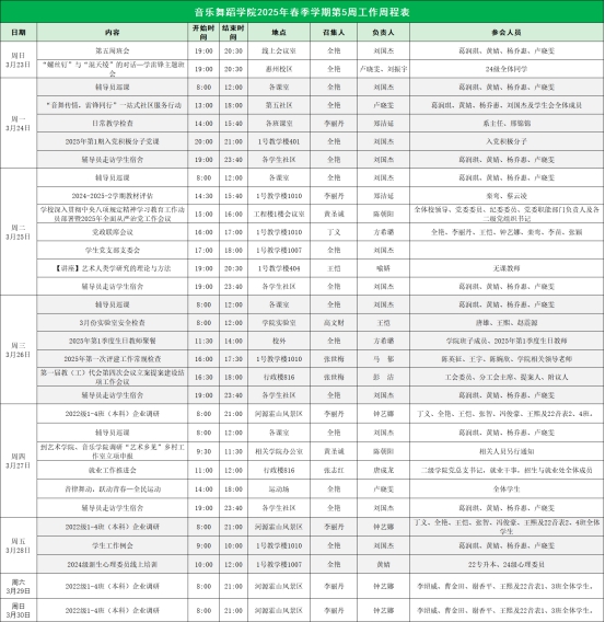 威廉希尔williamhill中文2025年春季学期第5周工作周程表