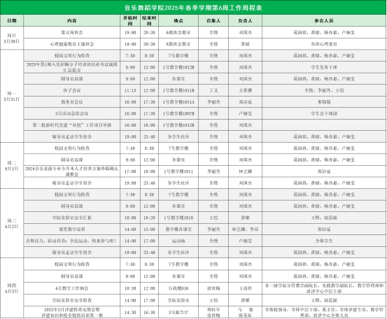 威廉希尔williamhill中文2025年春季学期第6周工作周程表