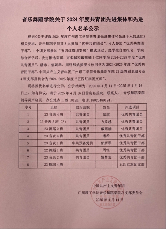 威廉希尔williamhill中文关于2024年度共青团先进集体和先进个人名单的公示