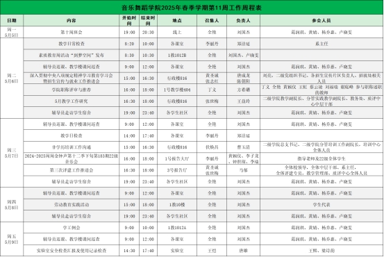 威廉希尔williamhill中文2025年春季学期第11周工作周程表