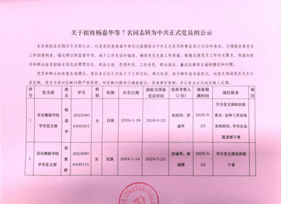 关于拟将杨嘉华等7名同志转为中共正式党员的公示