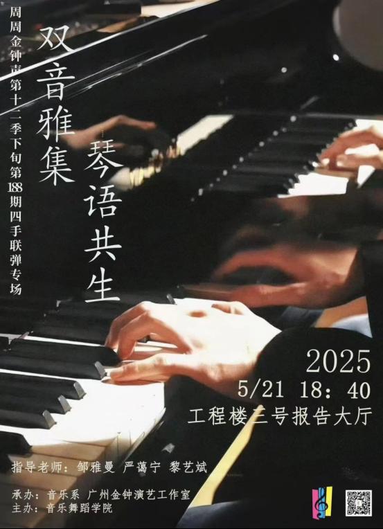 演出预告丨2024-2025周周金钟声第12季下旬第188期“双音雅集·琴语共生”四手联弹专场
