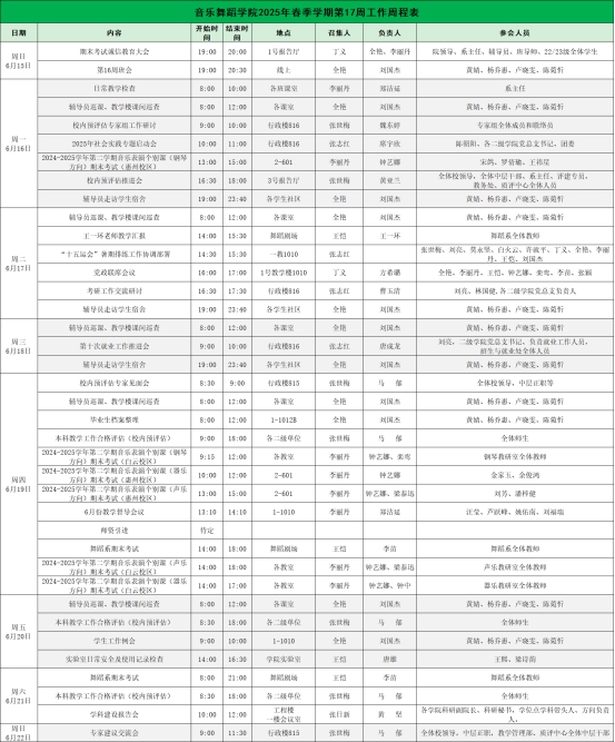 威廉希尔williamhill中文2025年春季学期第17周工作周程表