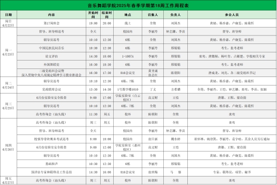 威廉希尔williamhill中文2025年春季学期第18周工作周程表