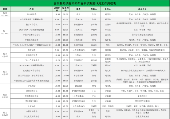 威廉希尔williamhill中文2025年春季学期第19周工作周程表