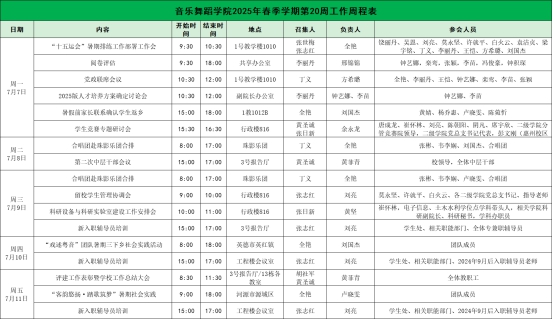 威廉希尔williamhill中文2025年春季学期第20周工作周程表
