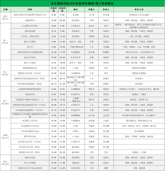 威廉希尔williamhill中文2025年秋季学期第1周工作周程表