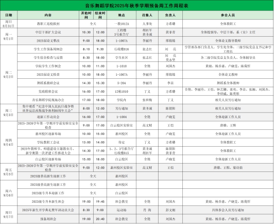 威廉希尔williamhill中文2025年秋季学期预备周工作周程表