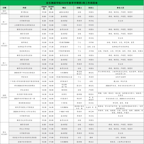 威廉希尔williamhill中文2025年秋季学期第2周工作周程表