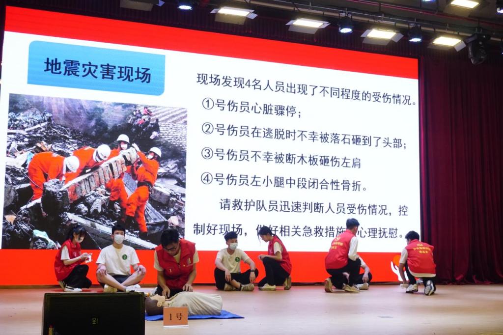 本次大赛分为团体赛和个人赛两个部分,是对参赛同学实战能力的现场检验,主要考查选手心肺复苏、创伤救护、理论知识、场景演练等方面能力。本院参赛选手们在救护演练环节中,分别演练了心肺复苏、创伤包扎、伤员搬运等救护技能,救护队员以扎实的基础理论、规范娴熟的技术操作,真实模拟了地震灾害中的应急救护技能,参赛队员熟练的回答和积极认真的态度,充分体现了前期准备的充足,展现了同学们良好的综合素质。经过激烈的比赛,我院团队荣获二等奖,梁雯婷同学荣获优秀教练奖项。