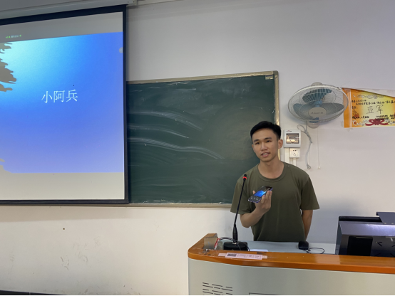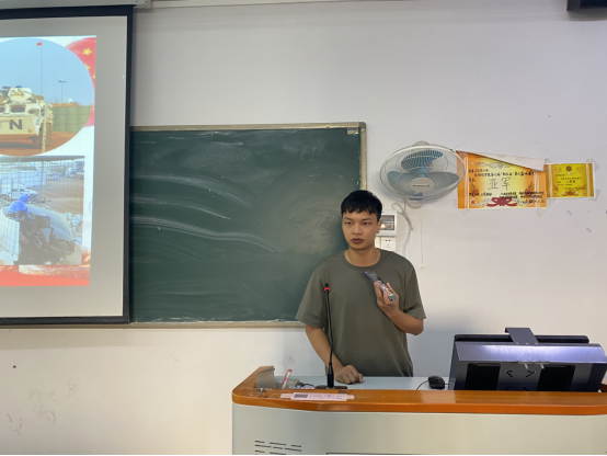 党总支副书记全艳老师在分享会上致辞,引导青年学子树立“爱国拥军”的思想认识。紧随着退役大学生分别做宣讲:罗瀚同学介绍了军营里的美食和小动物,分享了他在炊事班的趣事;王浩杰同学在军营里是一名坦克兵,讲述了坦克兵的训练日常,体现士兵们吃苦耐劳,坚强独立的品质;梁雯婷同学为我们讲述了加入军旅生涯成为通信兵的过程和同甘共苦并肩作战的战友情;余林涛同学为我们分享了在军营生活里的苦中作乐和自身的经历;何贤锐同学所在部队是雷锋曾经所在的部队,他为我们陈述了雷锋的经历、传播雷锋精神。分享会尾声,五位退伍大学生对同学们提出的问题进行了答疑。