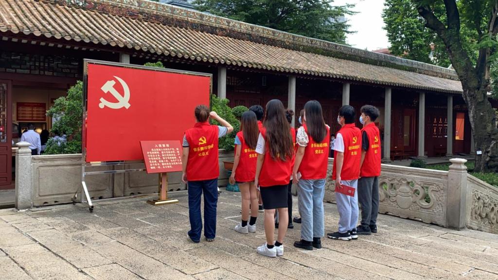 广州农讲所是广州市具有重大历史意义的革命纪念地,也是党和国家红色基因库。它的创办基于国共两党对农民问题的共识,也切合农民运动发展的现实要求,体现了理论逻辑与实践逻辑的统一,承载着国共合作的历史记忆。通过展板和讲解员的介绍,学生党员们认识到农讲所的历史起源。展馆内党员同志们一起观读历史图片和文物,真切地感受到当时的革命气氛和革命情景。看着旧日的文物和宏伟的古建筑群,历史的气息让支部党员们感受到先烈们的革命精神,也让学生党员们更加深刻认识“星星之火,可以燎原”的意义。随后,在大成殿前,党支部参观学习一行人在党旗下重温入党誓词。大家举起右拳,以坚定有力的宣誓声,表达“不忘初心,牢记使命”的信念和决心。