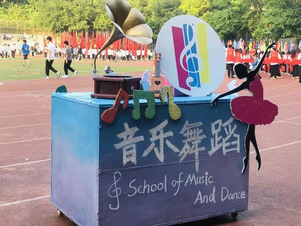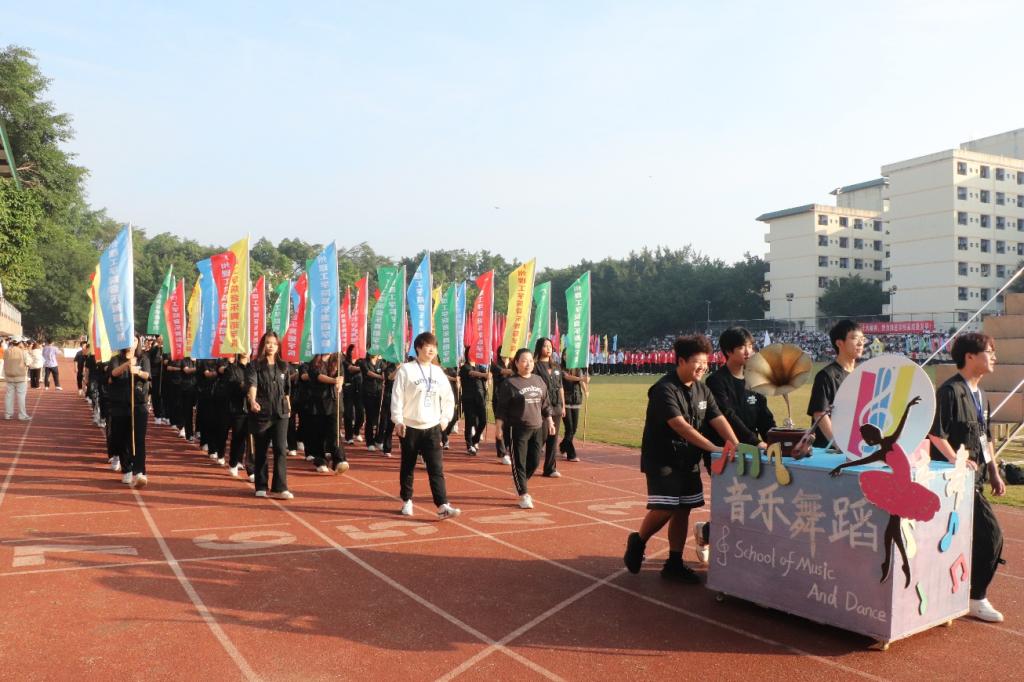 随着口号“奏出青春,舞出梦想;音乐舞蹈,谱写辉煌”响起,威廉希尔williamhill中文方队出场,院旗、院车、学院党总支副书记全艳和副院长李丽丹、彩旗方队、运动员方队依次出场,他们迈着整齐的步伐,以饱满的精神和昂扬的斗志 ,表现出威廉希尔williamhill中文青春活力和昂扬斗志。其中,威廉希尔williamhill中文的院车是由音乐中的音符、留音机、尤克里里及舞蹈中的动作元素结合而成的,代表着威廉希尔williamhill中文的学子们将会在威廉希尔williamhill中文把艺术发扬光大,并取得更优异的成绩。