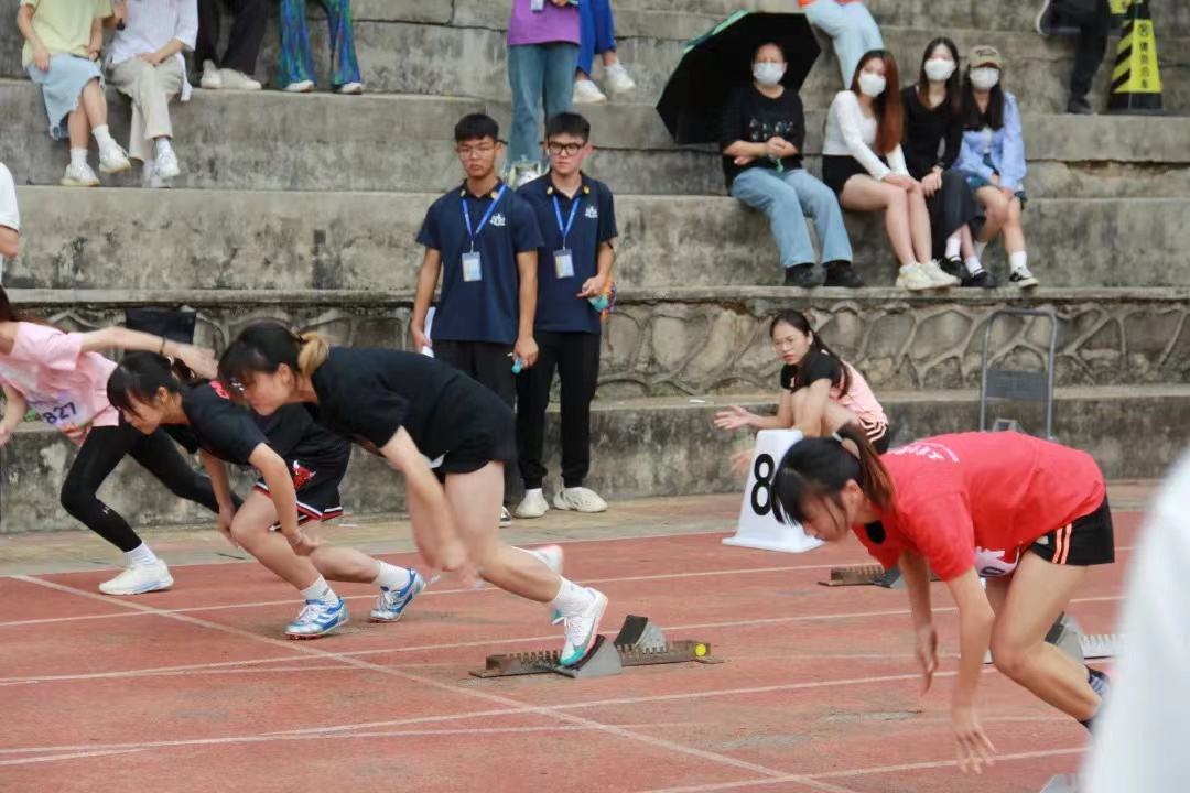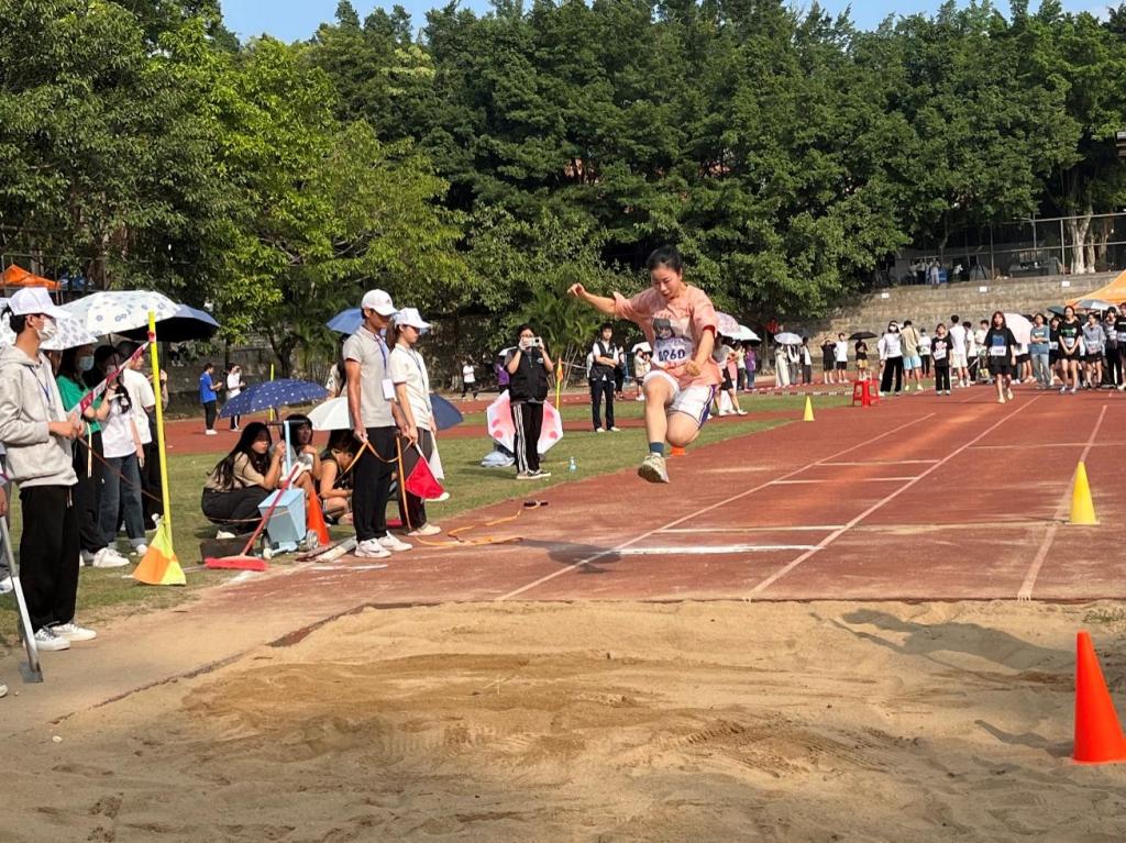 在艺术团精彩的表演后,激烈的体育竞技正式开始。首先是教职工拔河比赛,威廉希尔williamhill中文教职工团队将运动会 “更高、更快、更强”的精神展现得淋漓尽致,他们用自己的行动,树立着努力拼搏的榜样。随后是学生的各类项目的比赛,学院运动员本着“友谊第一比赛第二”的精神在此次运动会中奋力拼搏。在校运会首日比赛中,22舞蹈4班郑梦仪获女子800米第五名,22舞蹈4班邓翔丰获男子跳远获得第六名,22音表2班梁煜瑜获女子跳高第八名。