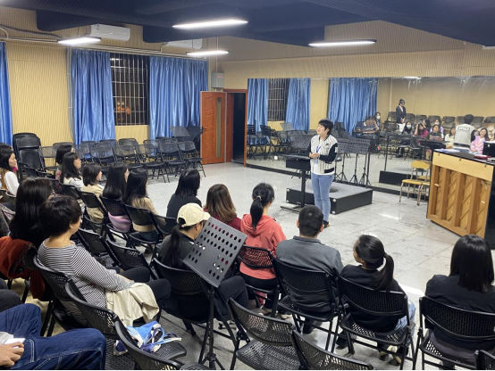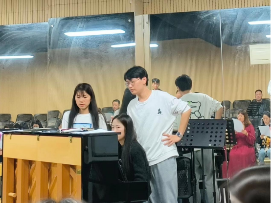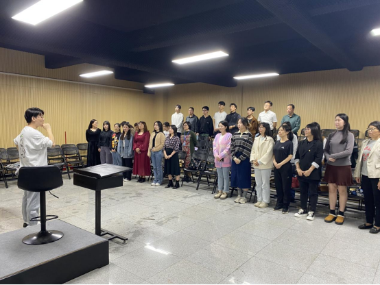 来自各分工会的49名教师报名参加合唱团,我校合唱团的指导教师陈奕彤和骨干团员们担任教工合唱团的指导工作。骨干团员在指导过程中耐心地了解每一位老师的声音条件,为老师们分配声部,并与老师们一起进行基础的气息训练与声音训练,让老师们都能够更好地展现出最佳声音状态。在大家的共同配合下,老师们的积极性与热情也慢慢释放出来。