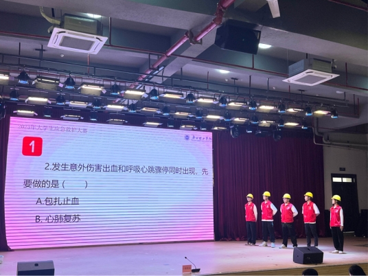 此次应急救护大赛的举行,让广大师生了解了应急救护知识,增强应急救护意识,提高了安全防范和应急救护能力,弘扬了保护人的生命健康的人道主义精神,更展现了大学生的良好精神风貌。