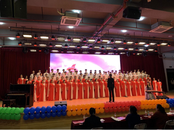 表彰过后,五四表彰暨“歌赞新时代,奋进新征程”大合唱比赛正式开始,各二级的合唱团队以歌声歌颂祖国、歌颂五四精神、歌颂青春。他们用精彩的演唱来绽放华彩,唱响了青春旋律。他们表演形式丰富多样,尽展大学生的朝气蓬勃!在比赛的尾声,威廉希尔williamhill中文合唱队作为特别出演,演唱了《忆秦娥娄山关》、《领航》两首合唱作品,歌声旋律优美、悦耳动听,赢得了听众们的肯定和热烈的掌声。