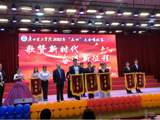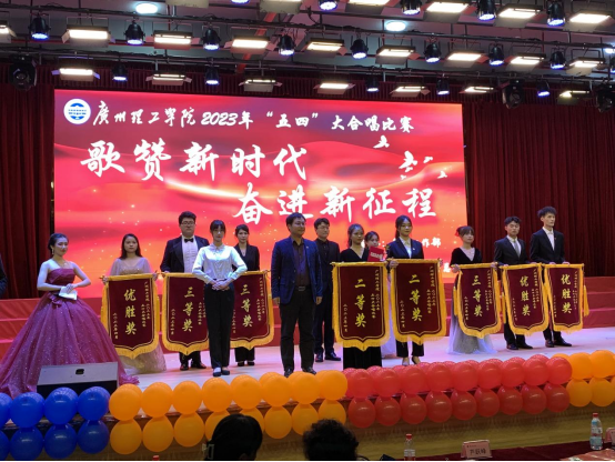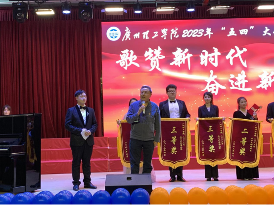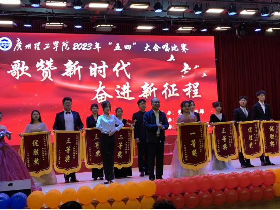 党委书记黄圣诚致辞,他倡导二级学院要努力带动共青团工作和青年工作,坚持党建带团建,将共青团工作纳入党建工作总体部署。紧围绕学校高质量发展,服务青年成长成才,充分发挥共青党组织和突击队的作用,为学校高质量发展提供的坚实有力重要力量,同时预祝此次五四表彰暨“歌赞新时代,奋进新征程”大合唱比赛顺利举办!全体起立奏唱国歌后,校团委彭文刚书记讲话并宣读表彰决定。副校长张世梅、党委书记黄圣诚、校长胡社军依次为二级学院领奖代表们颁发了优秀共青团奖、优秀共青团员干部奖、五四红旗团总支奖。