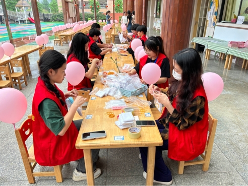 布场活动中,志愿者耐心听从幼儿园老师的布置任务以及具体要求,尽心尽力地做好每一个部分,有的细心参与舞台布置与墙面美化,塑造舞台的视觉形象;有的积极布置会场摆设,营造温暖的环境氛围;有的细致制作手工材料并耐心清点道具。在志愿者们共同努力下,幼儿园母亲节会场焕然一新,以温暖有爱的面貌呈现在大家面前。