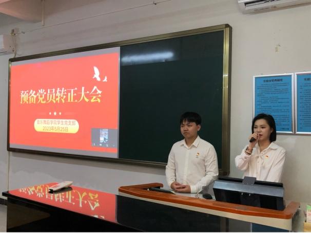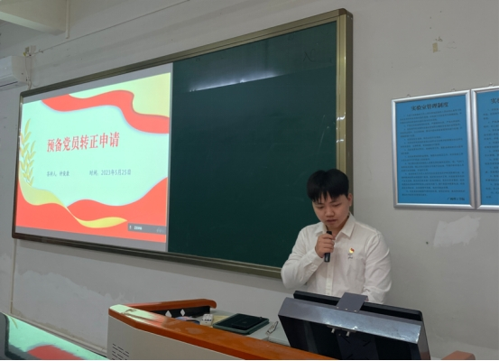 为发展与壮大党支部队伍、完善我院党员队伍建设、培养党的合格接班人、确保新党员质量,会议第二议程开展预备党员转正答辩和进行党员表决。杨紫萦、钟俊康、陈颖琳3位预备党员依次宣读转正申请,并在会上汇报了自己在一年考察期内思想、学习和工作等方面的成长与自身存在的不足之处,表明了自己为人民服务的端正态度和加入中国共产党的坚定决心,以及表示在今后的日子里,更要时刻以一名党员的标准严格要求自己。随后,3位预备党员开始对党的知识、党的理论进行答辩。介绍人对预备党员近一年来的思想、学习、工作等方面提问及做出详细的评价,并指出他们的不足之处,同时对三位同志提出应更加严格地要求自己,进一步加强理论学习,发挥党员的先锋模范作用,始终将为人民服务作为首要目标。